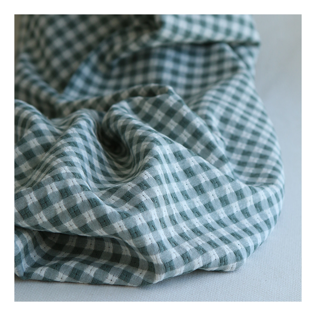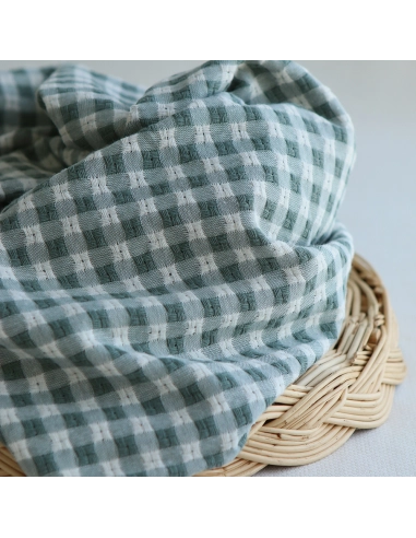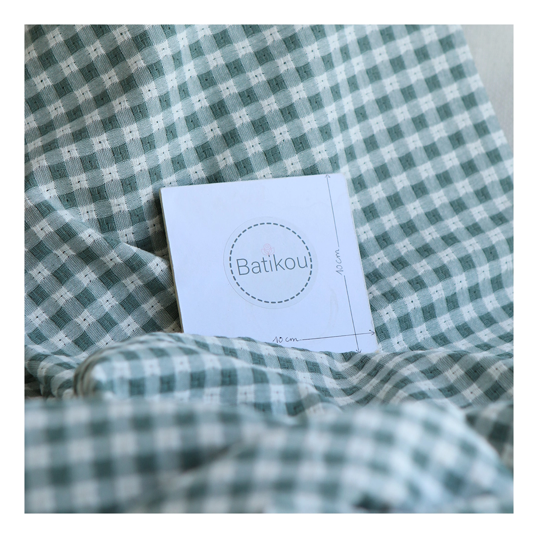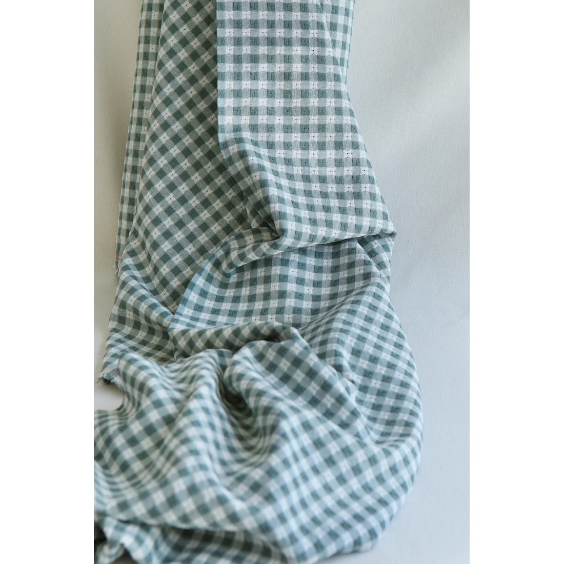 Dick - Seersucker / Coton gaufré texturé vichy 7mm écru et vert sauge