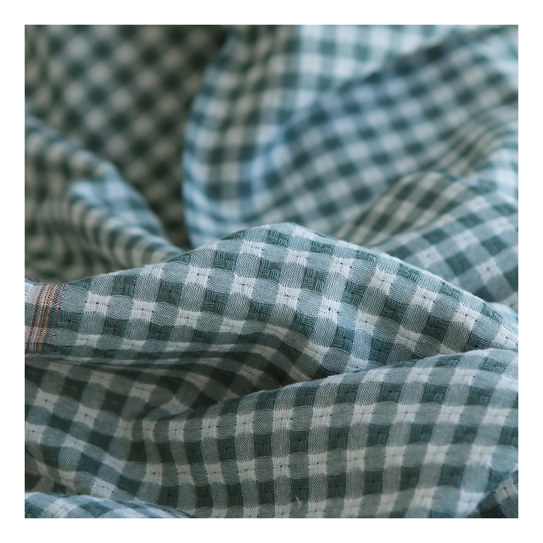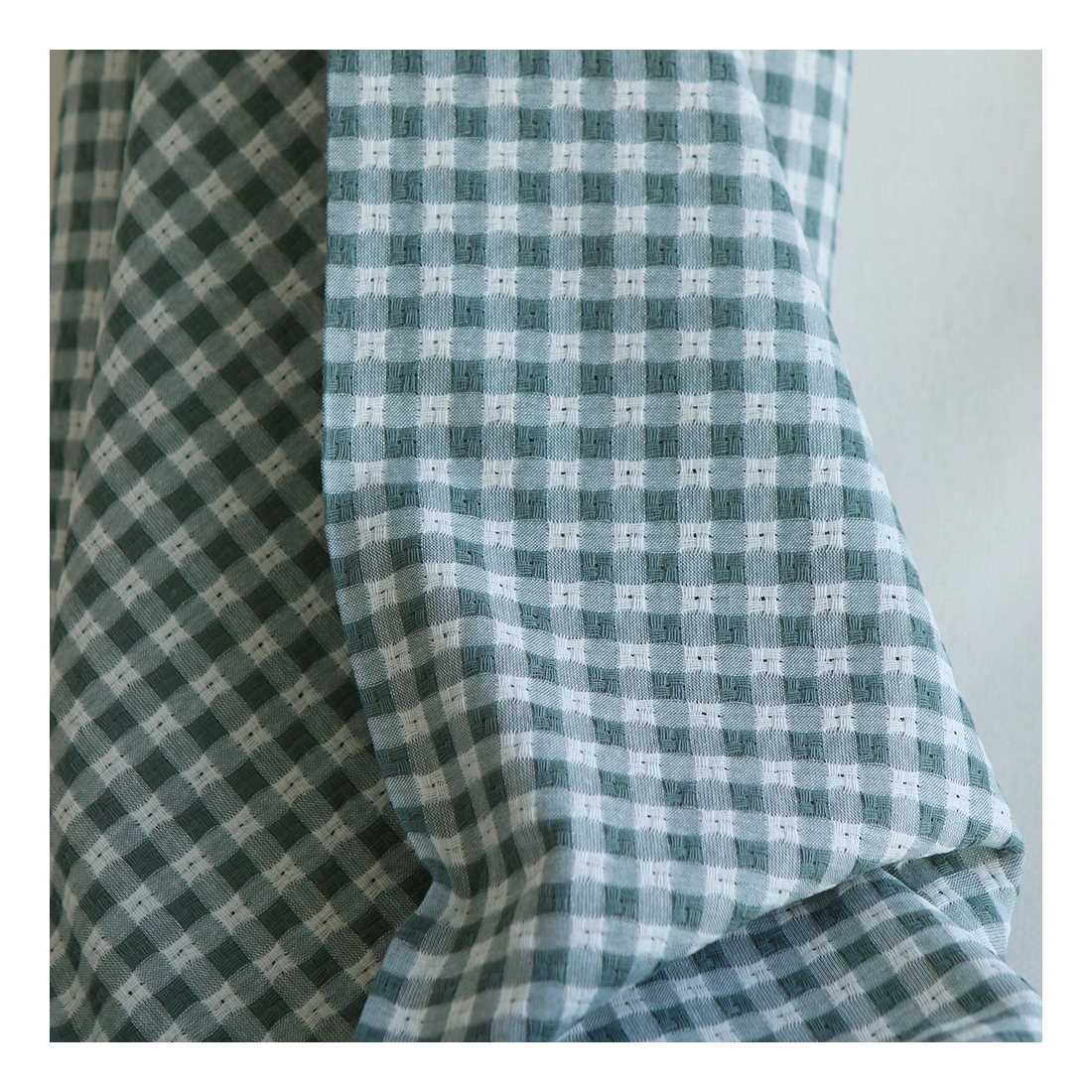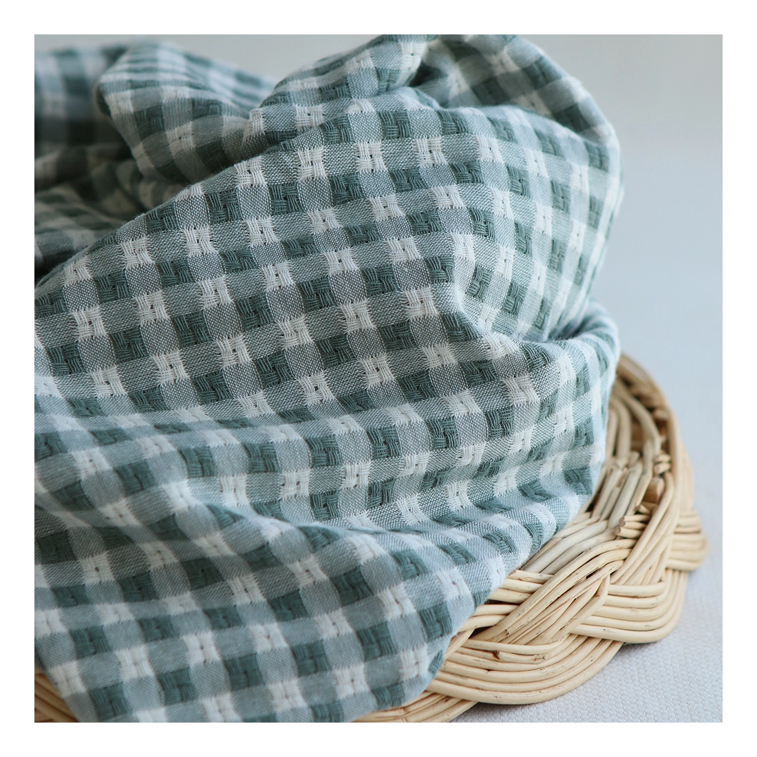 Dick - Seersucker / Coton gaufré texturé vichy 7mm écru et vert sauge