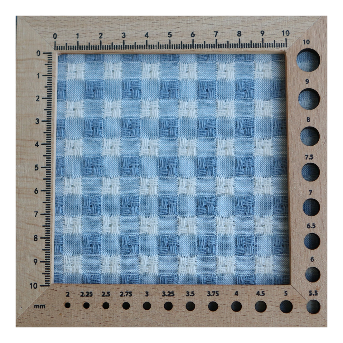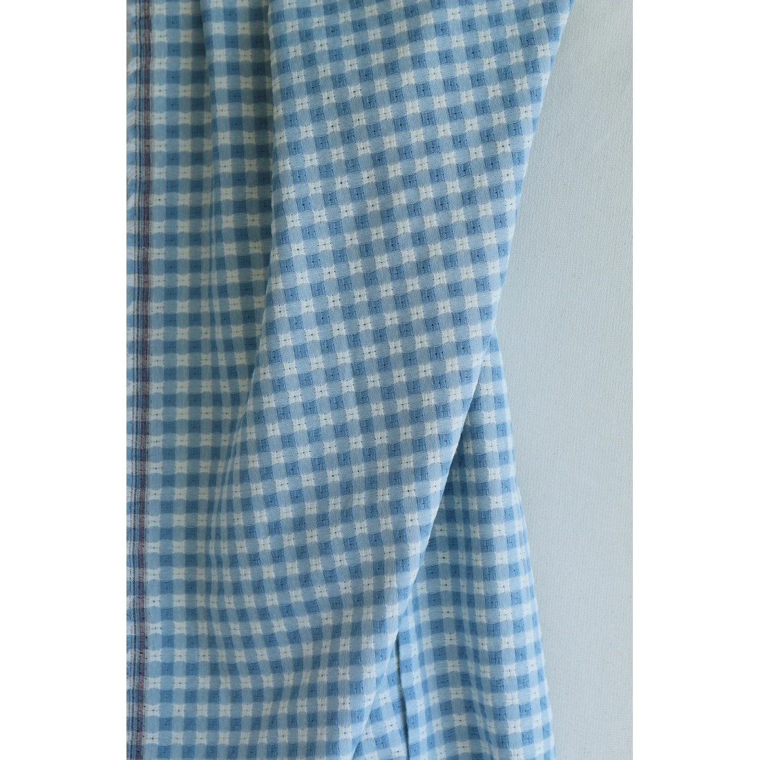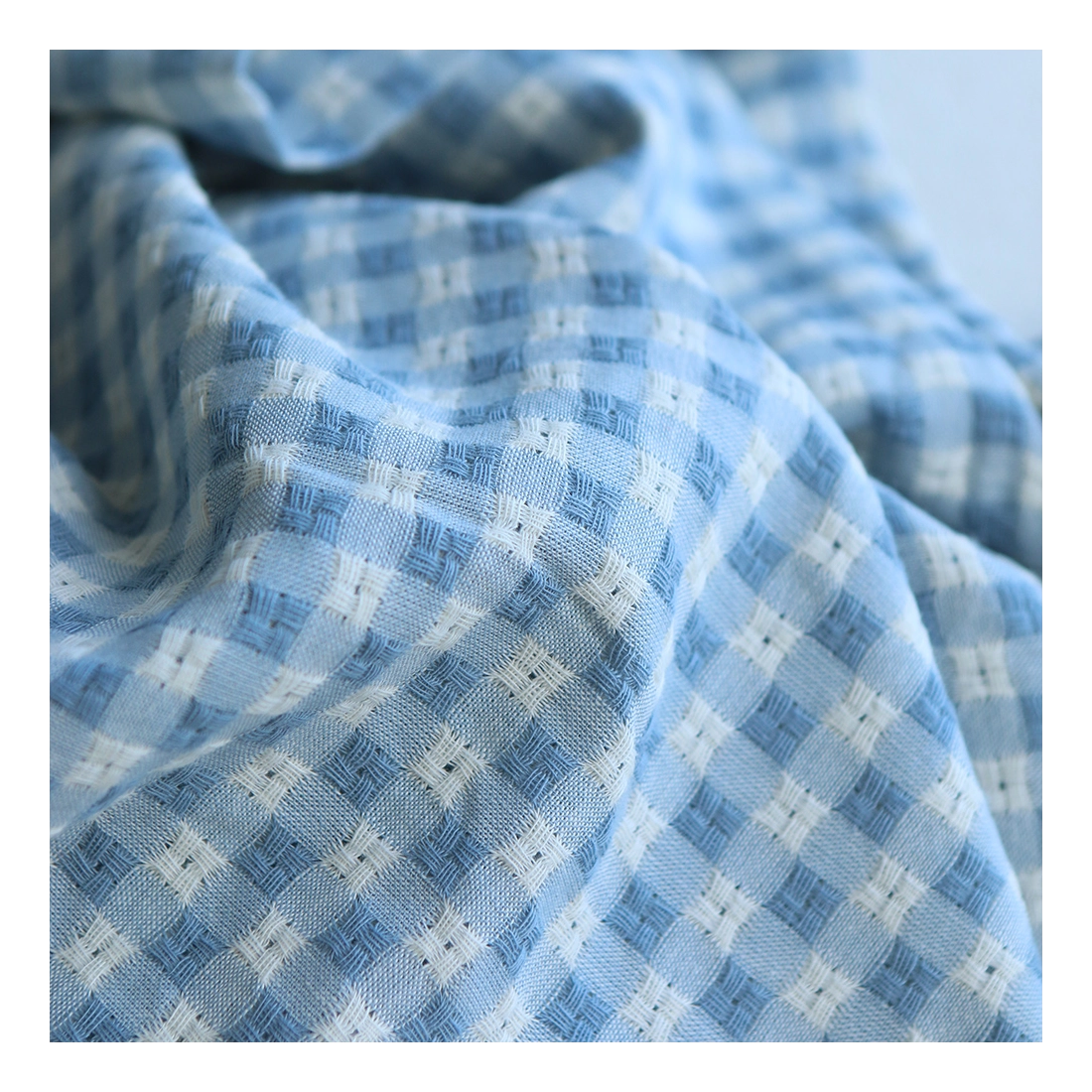 Dick - Seersucker / Coton gaufré texturé vichy 7mm écru et bleu jean tendre