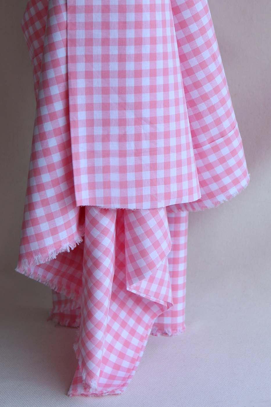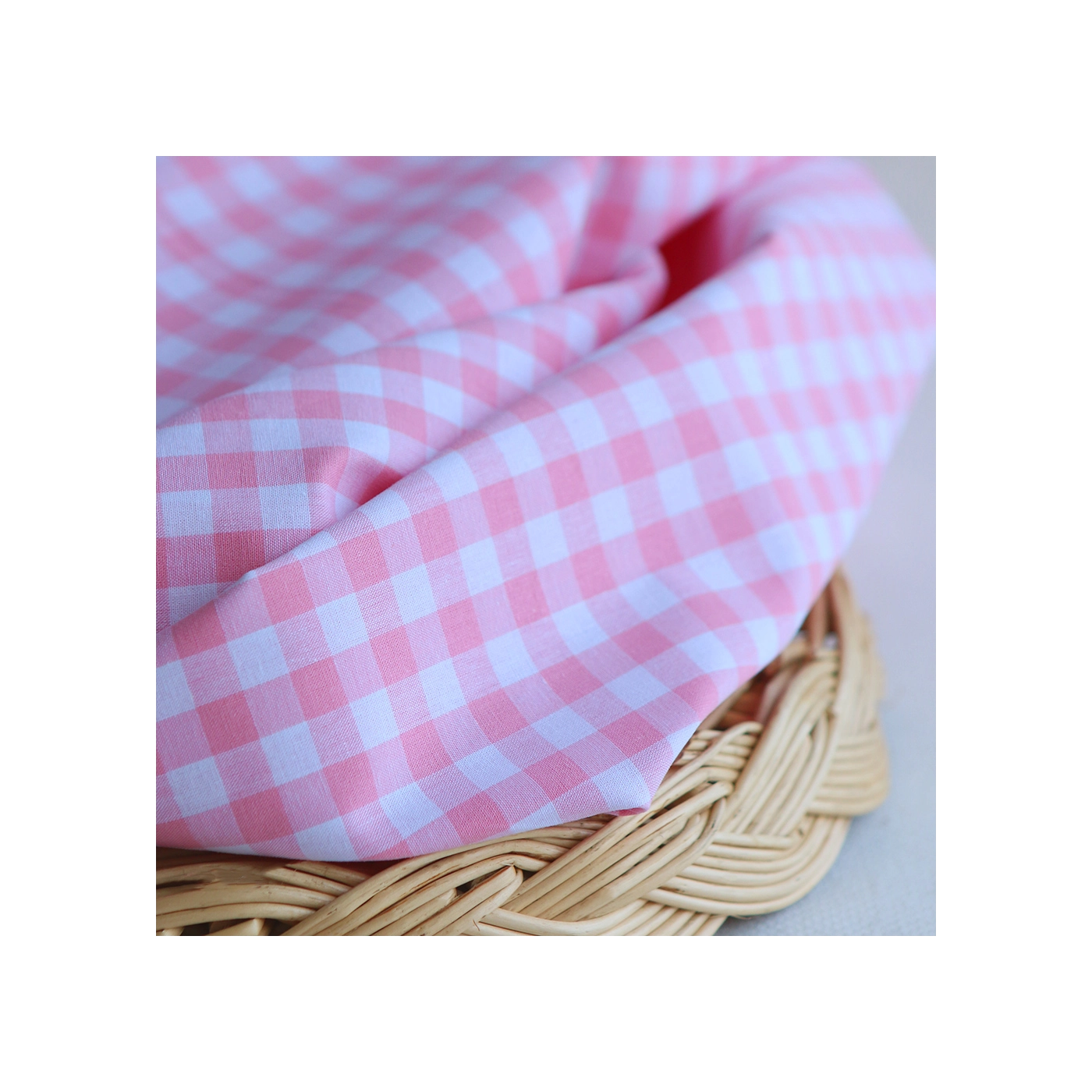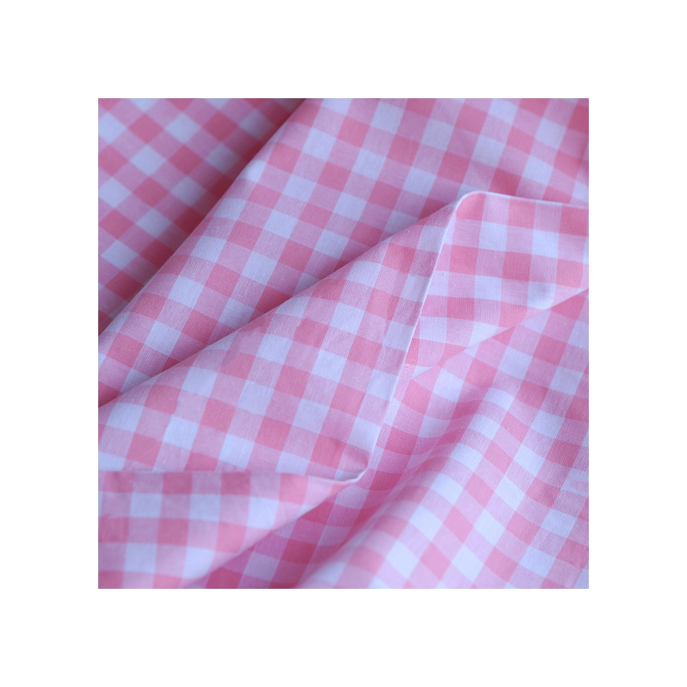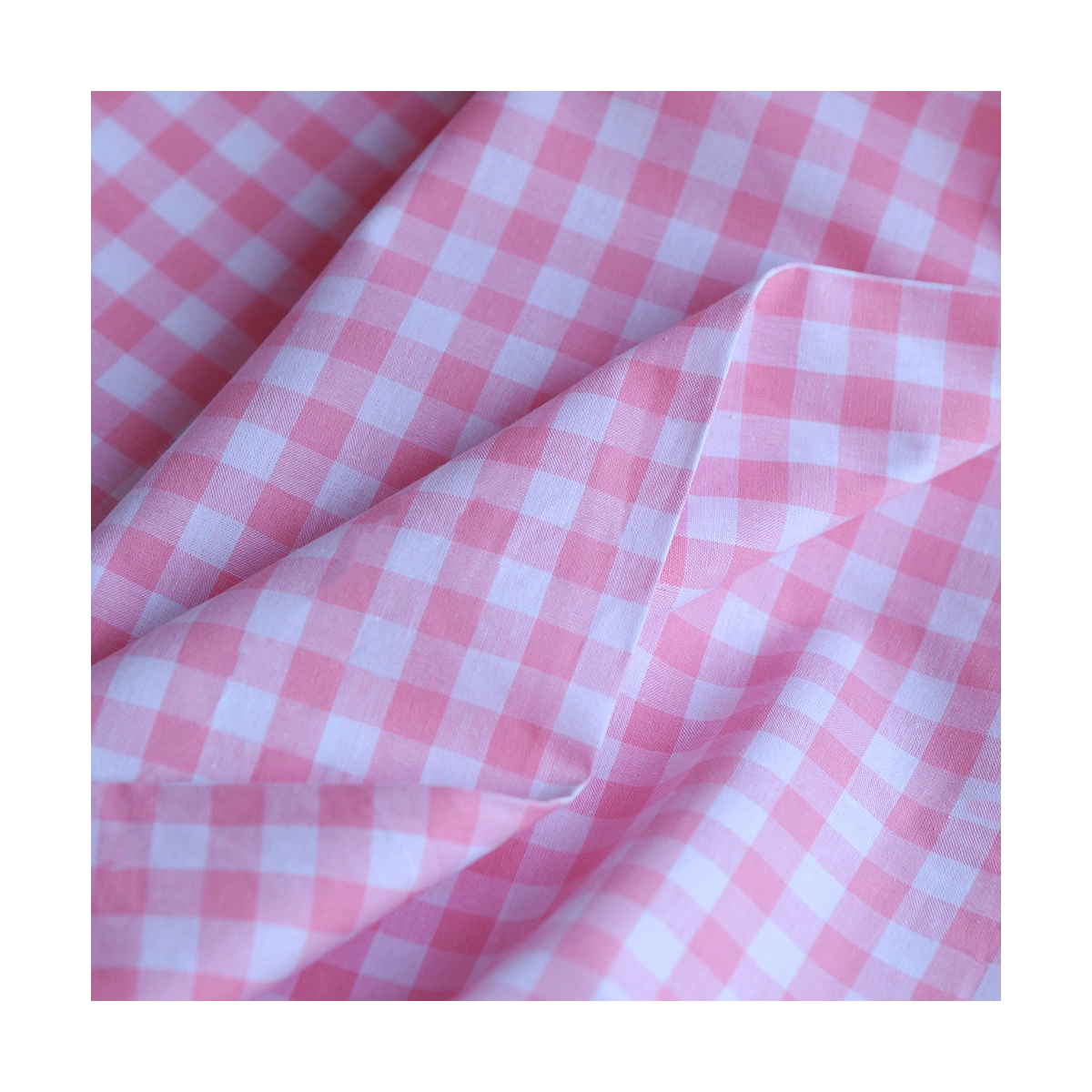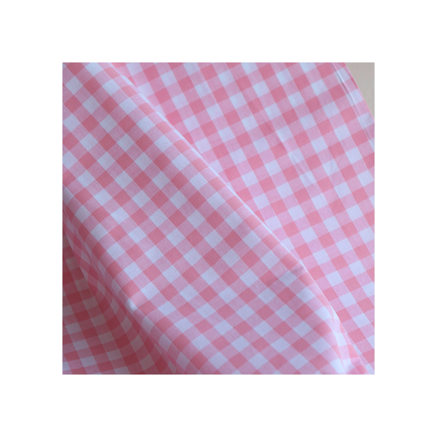 Popeline coton vichy carreaux 10mm rose frais