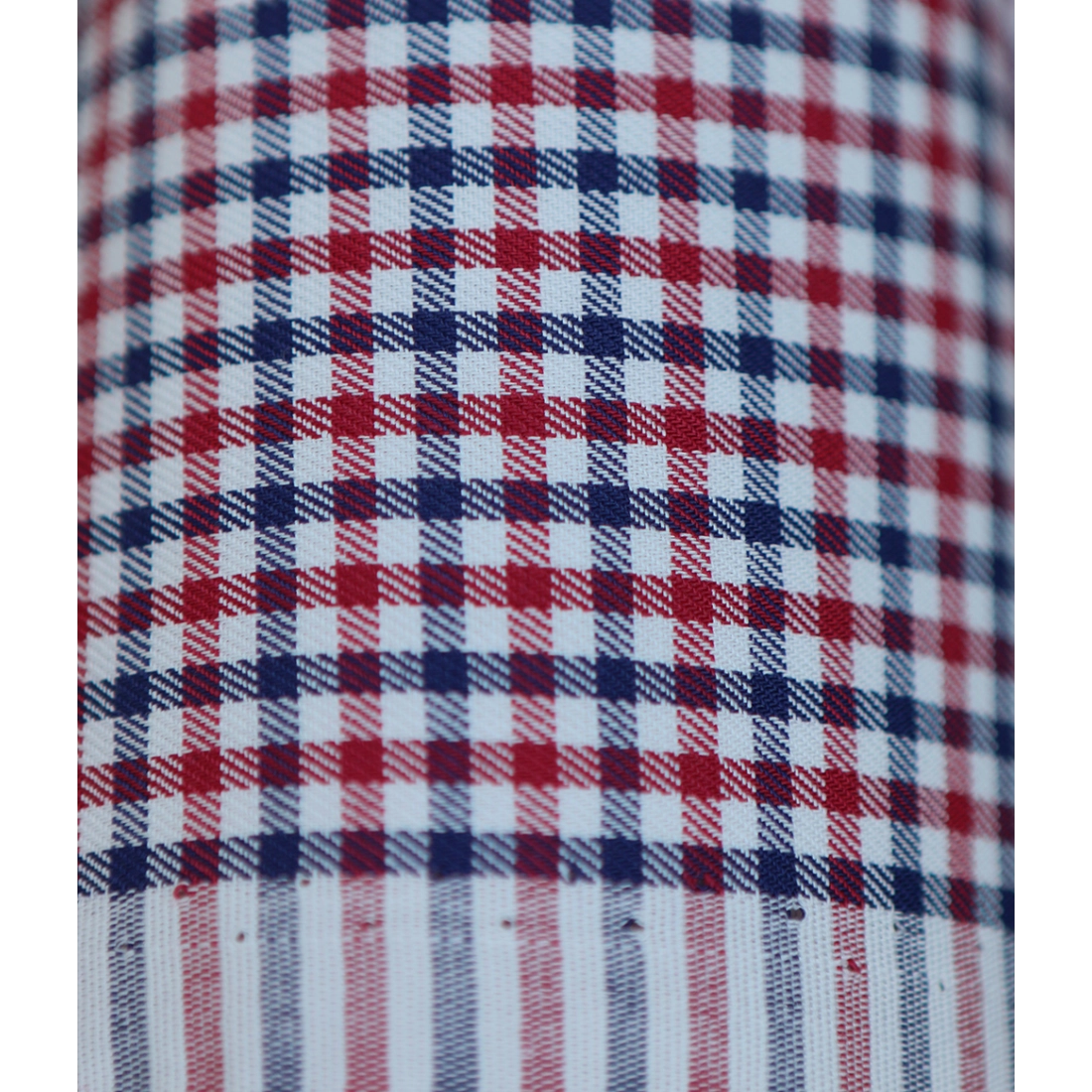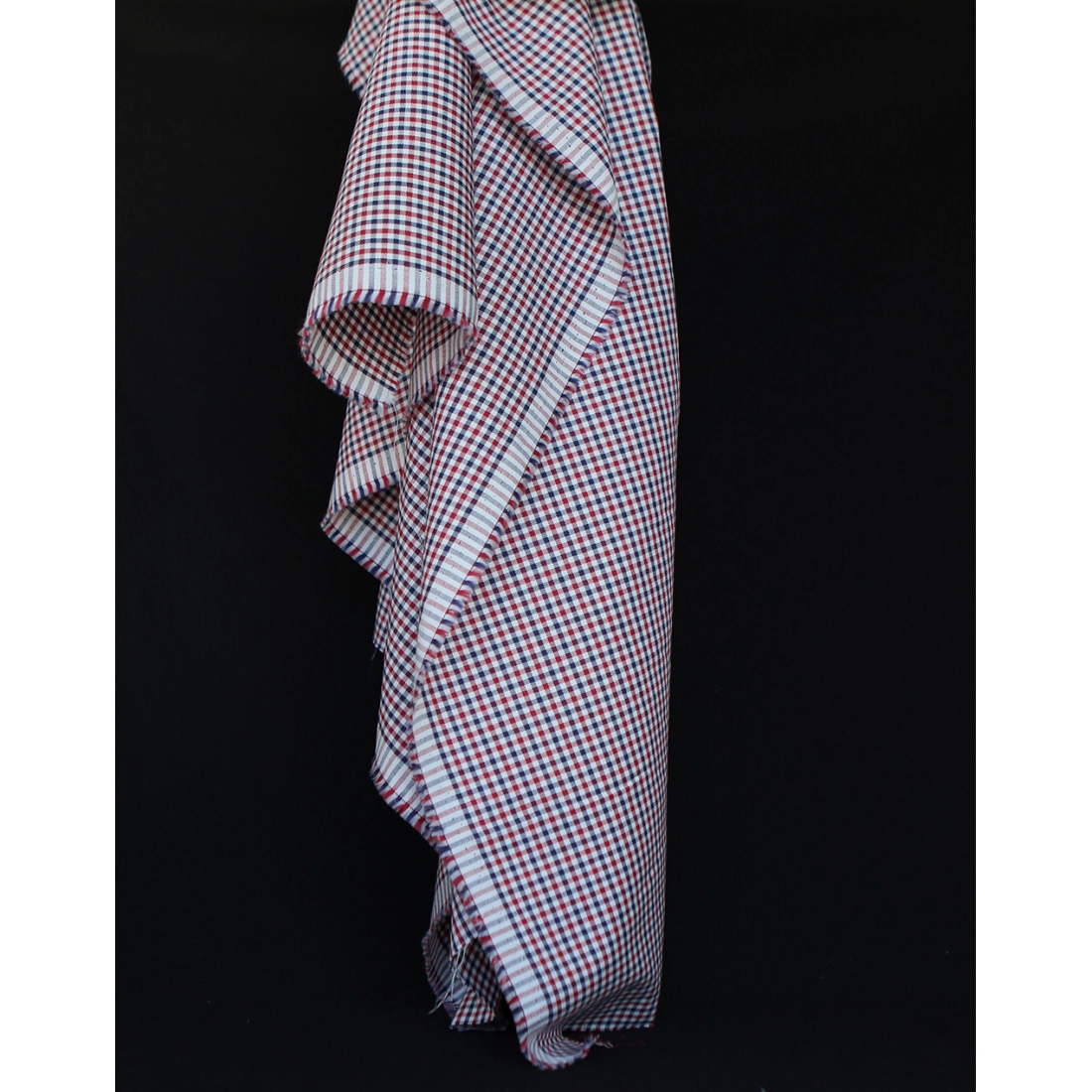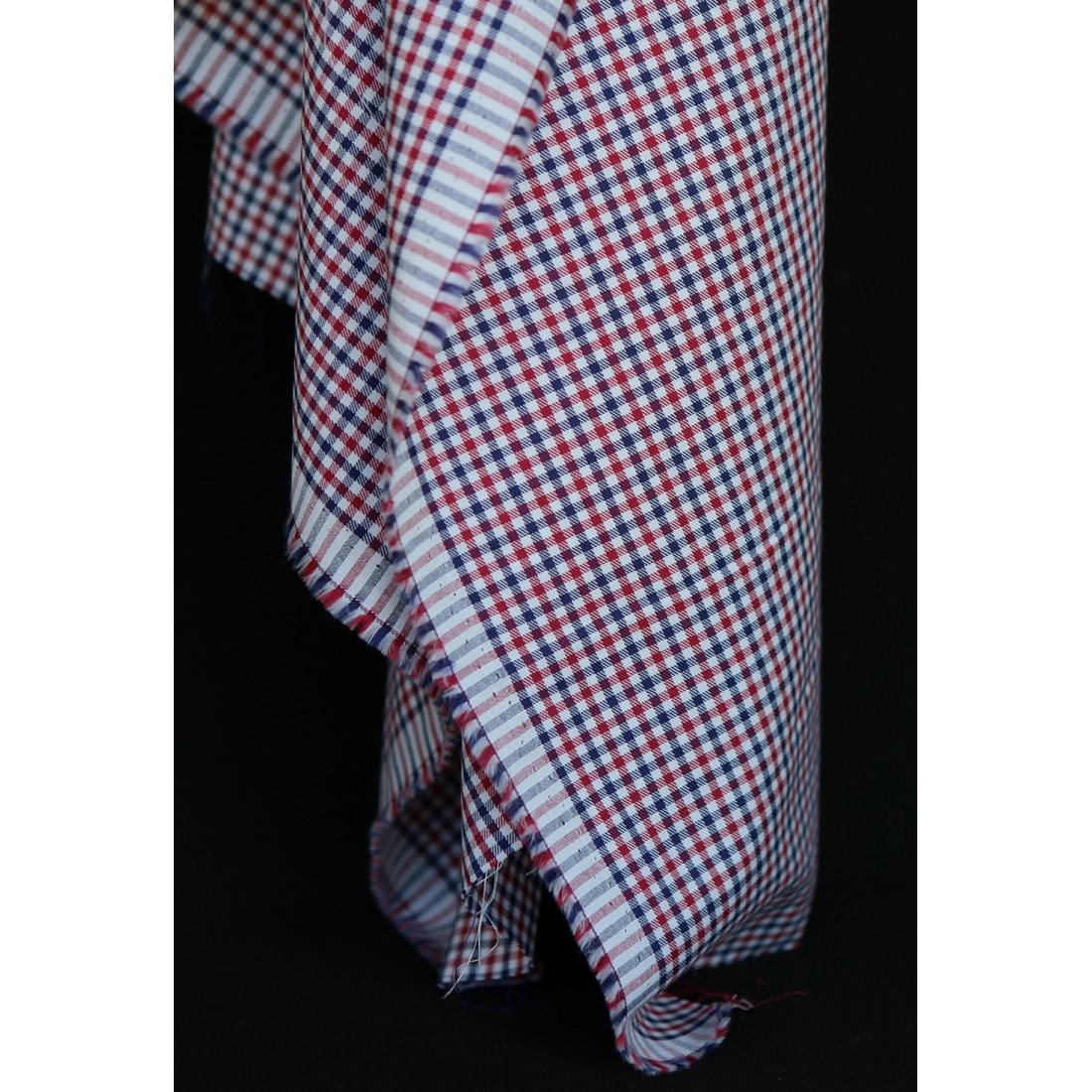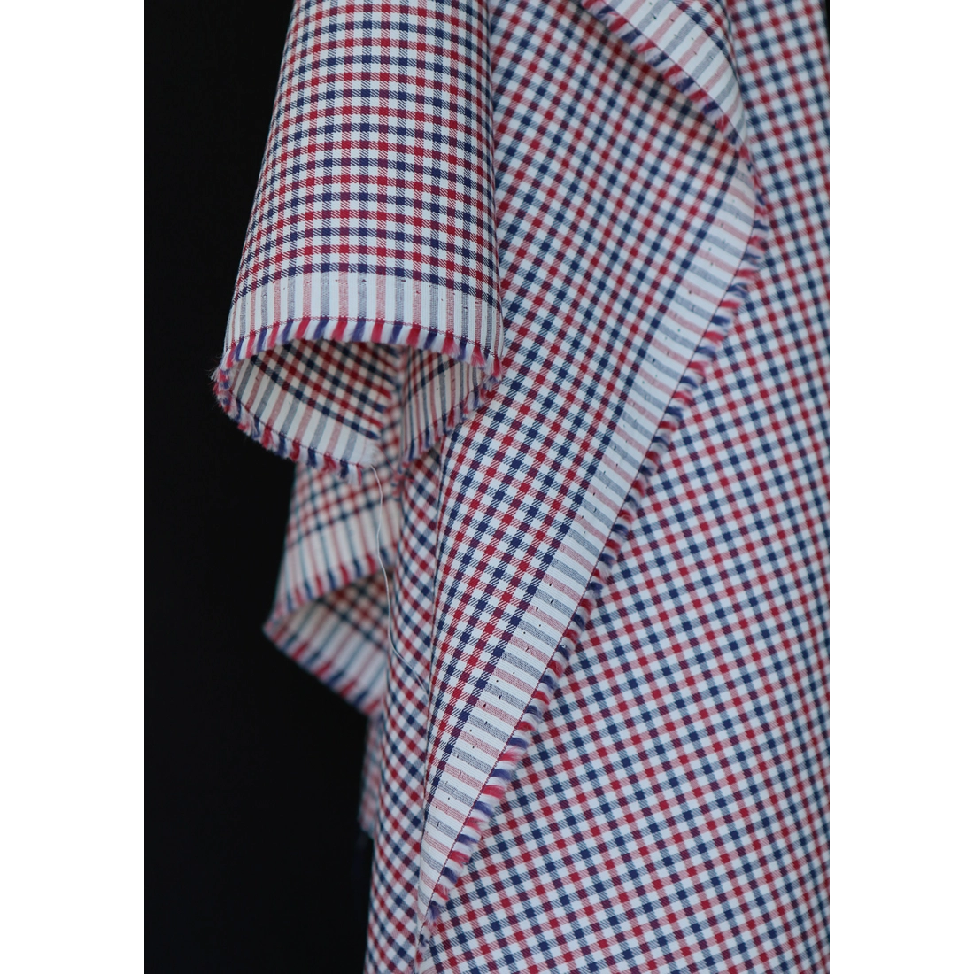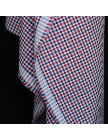Coloris: petit vichy rouge et bleu sur fond blanc lait
