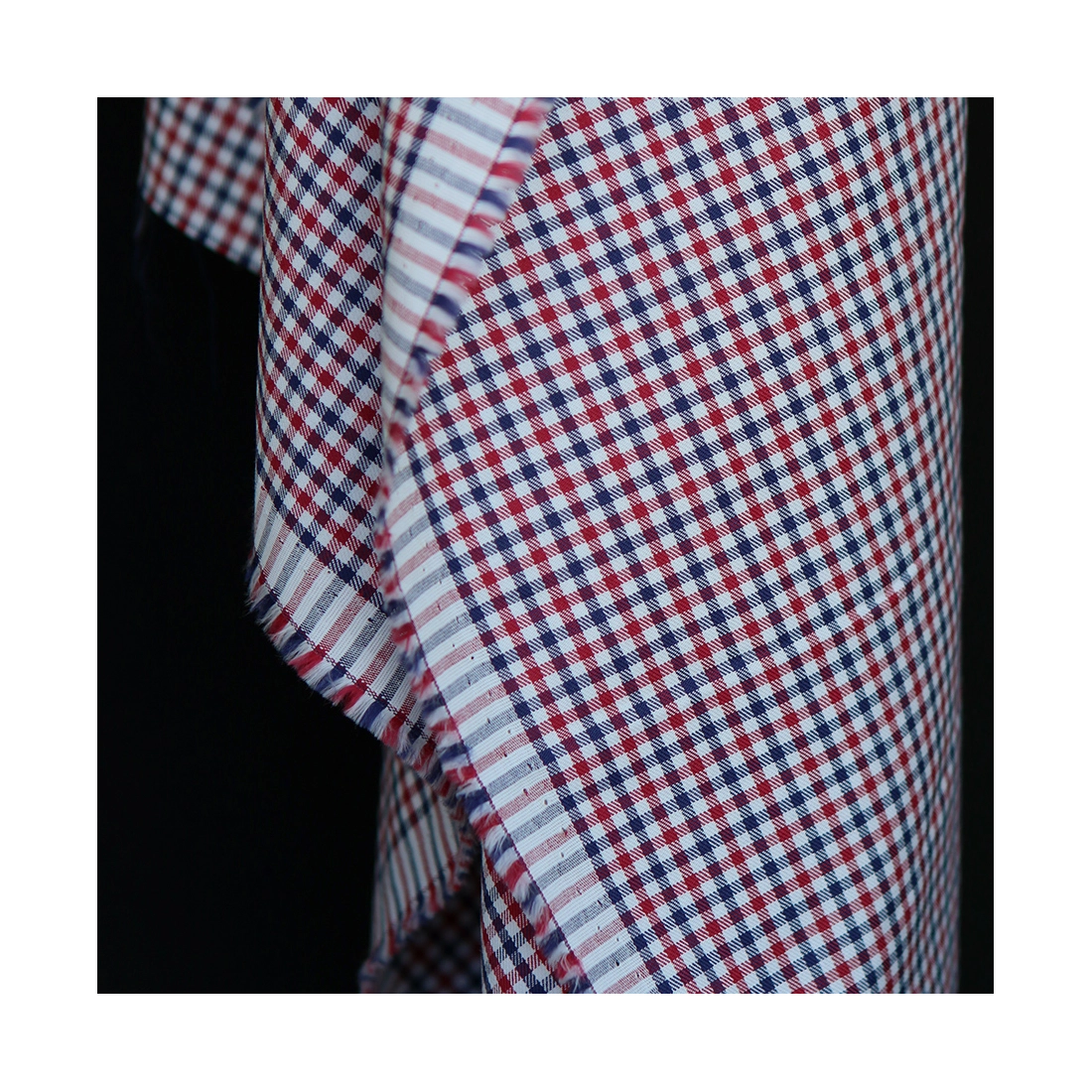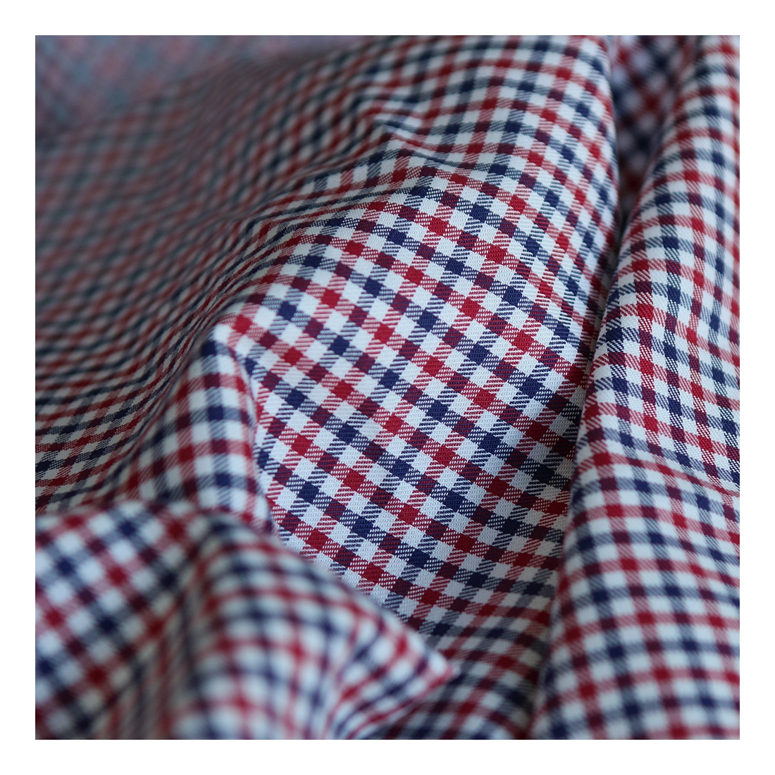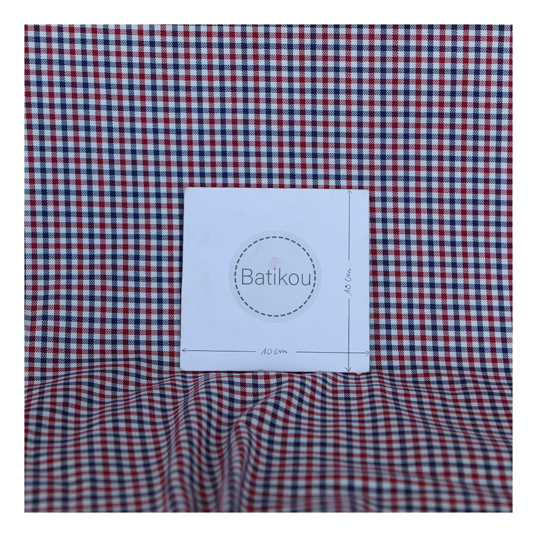 Archie - Coton gratté organique petit vichy rouge et bleu