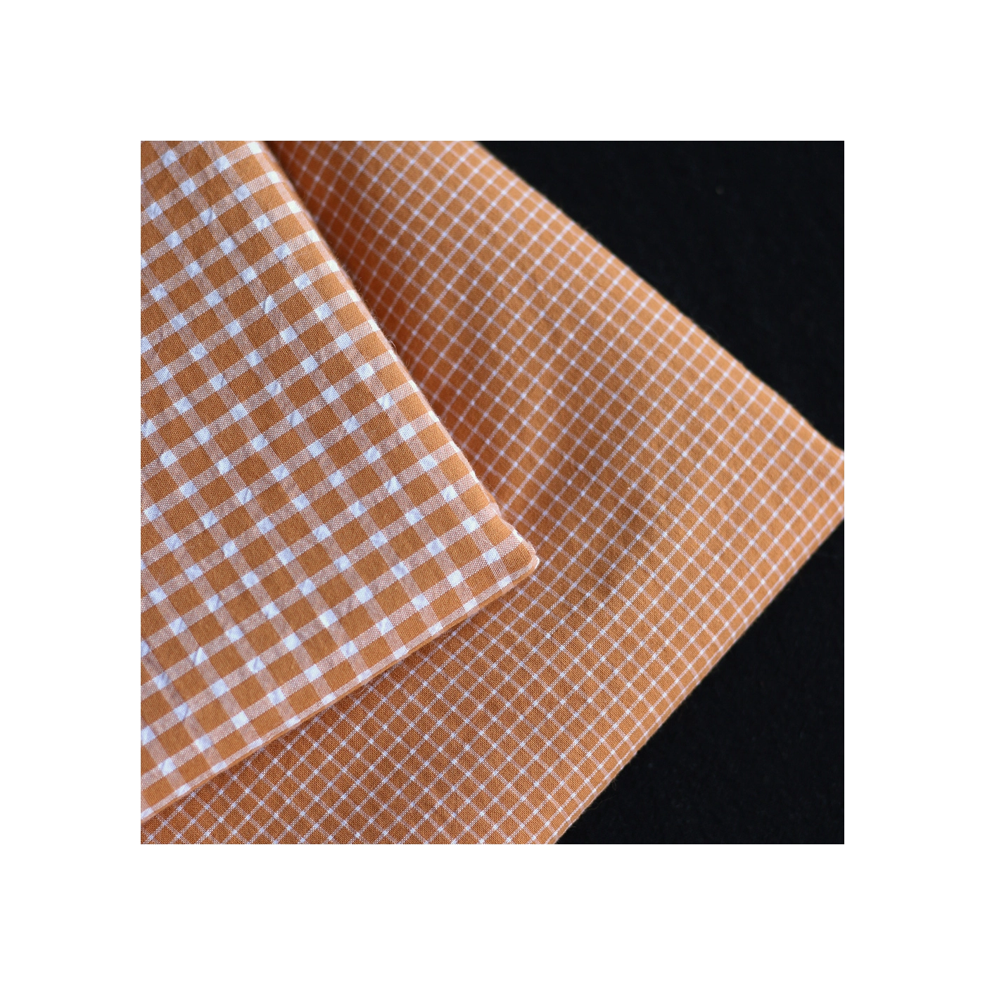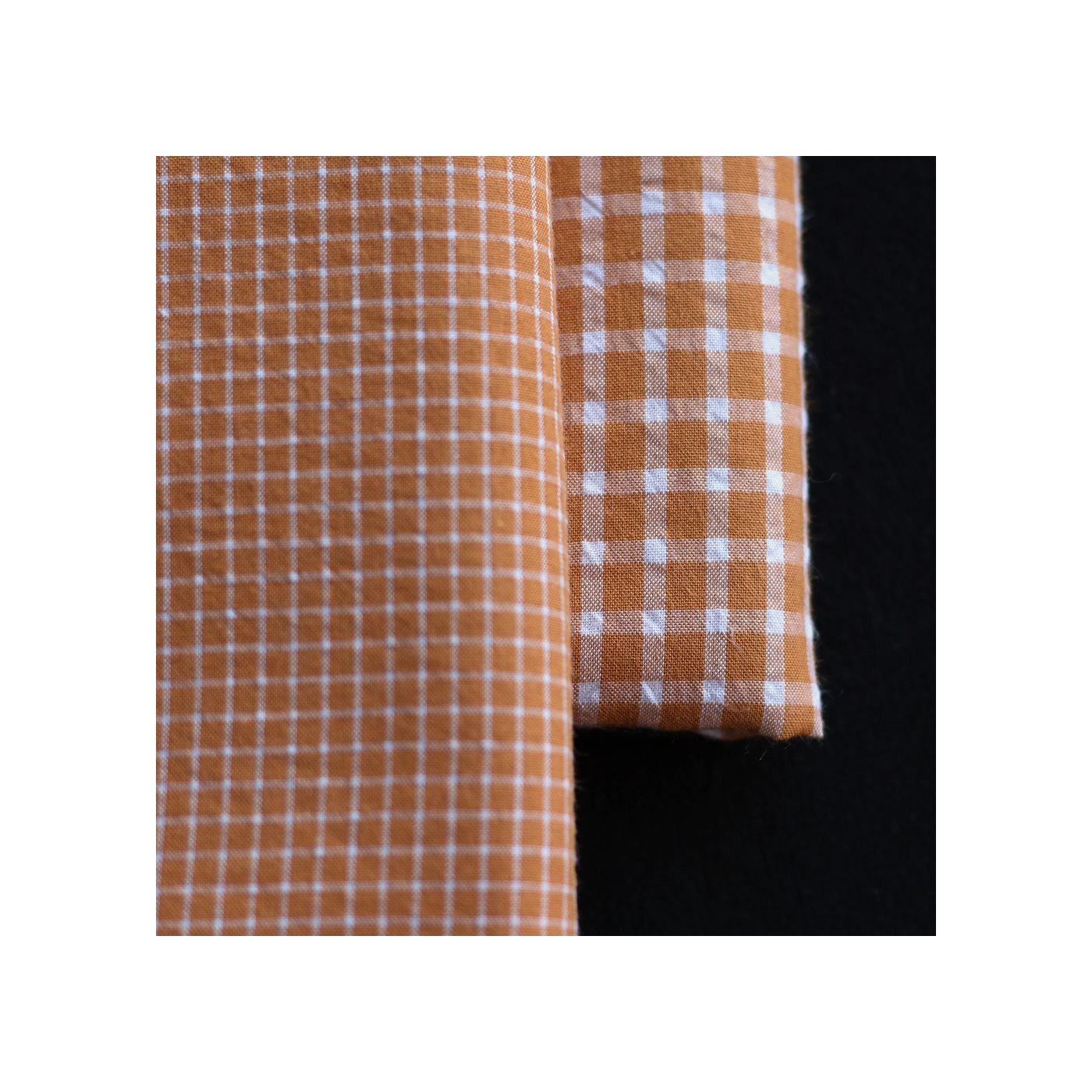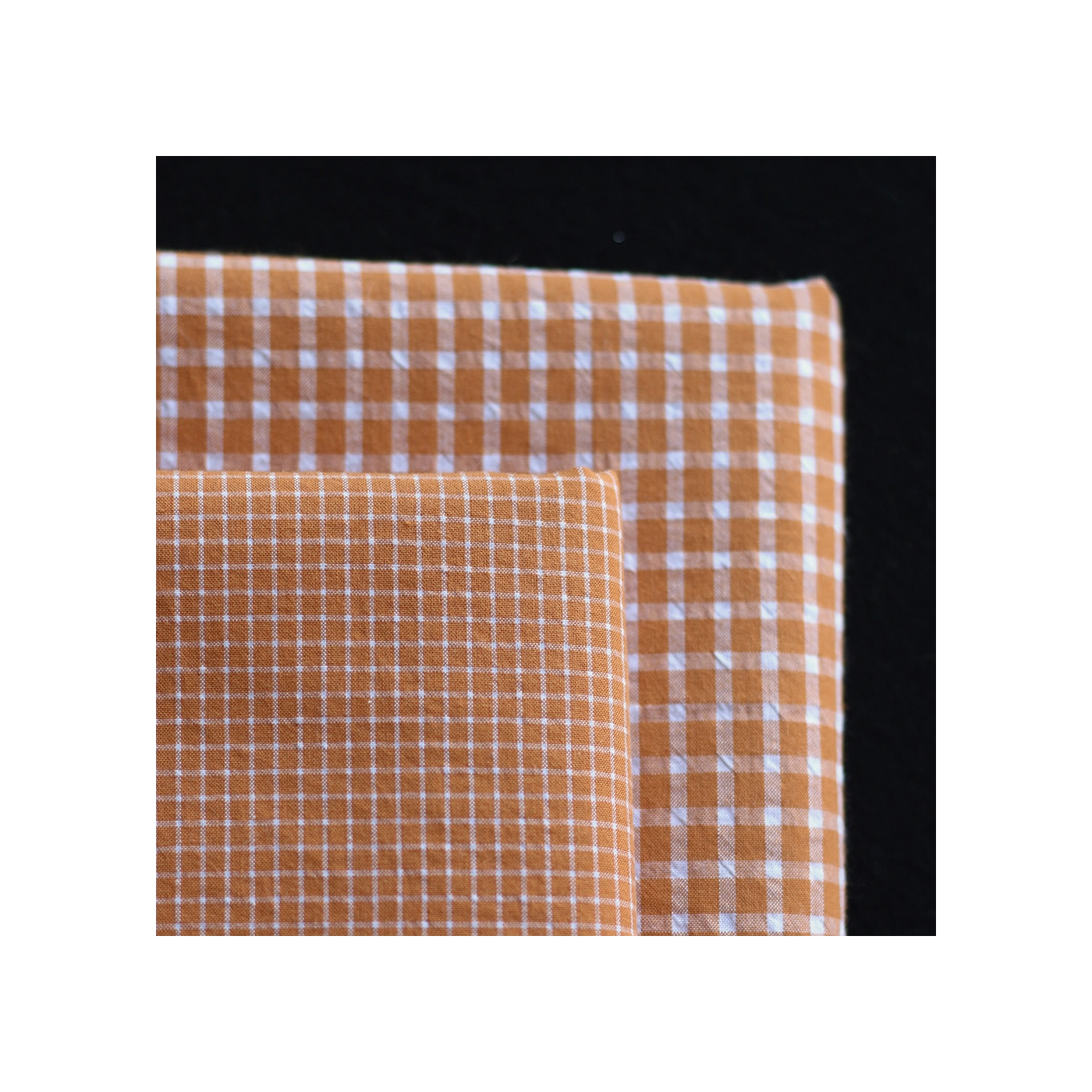 Seersucker / Coton gaufré quadrillage fin caramel