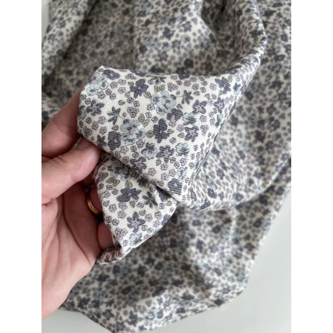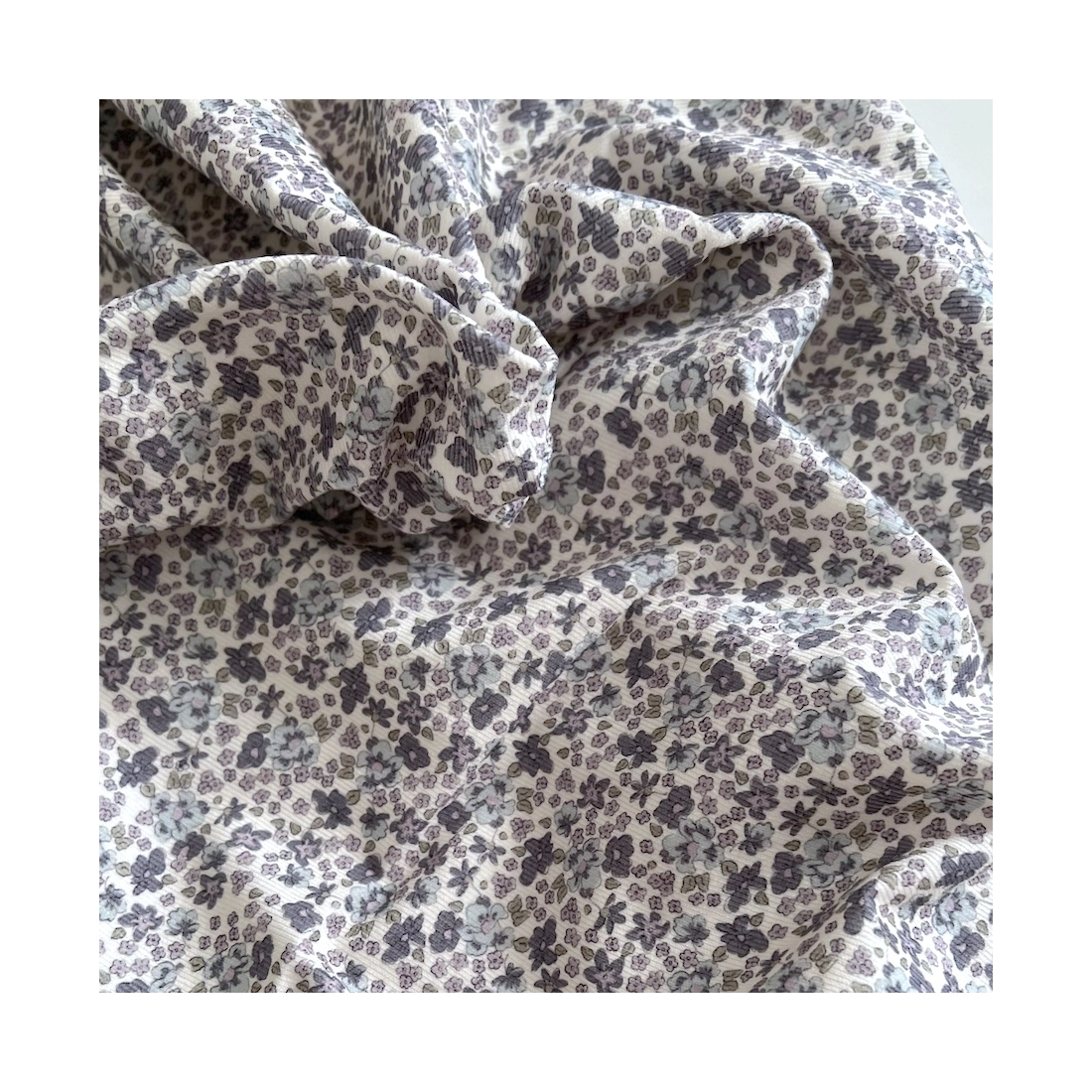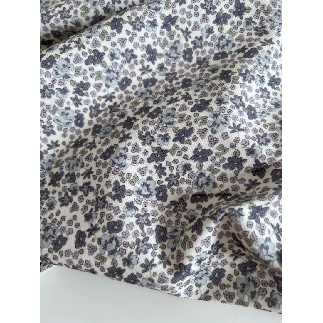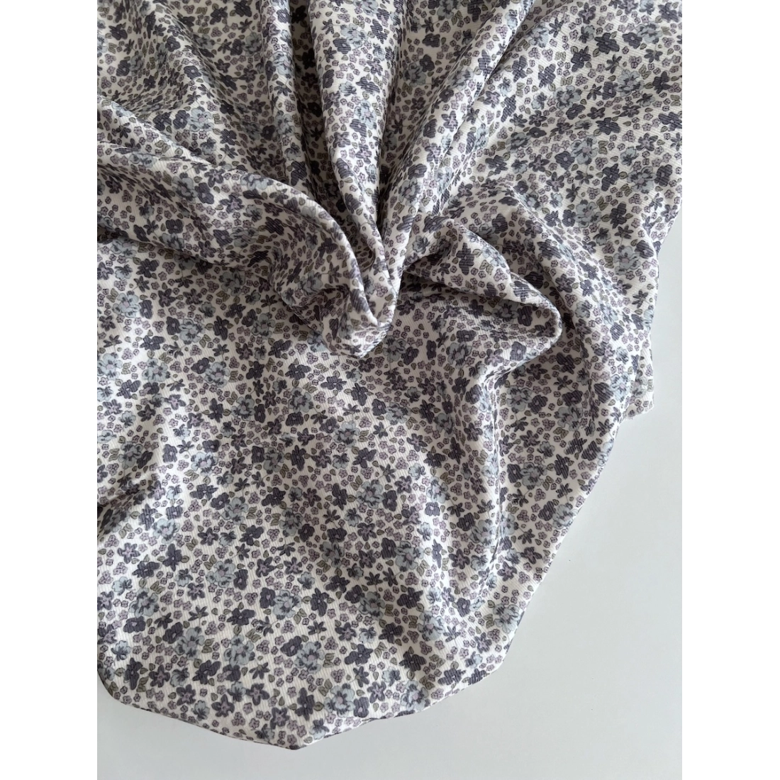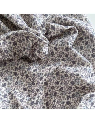 Kristen - Velours milleraies coton organique imprimé fleuri lavande