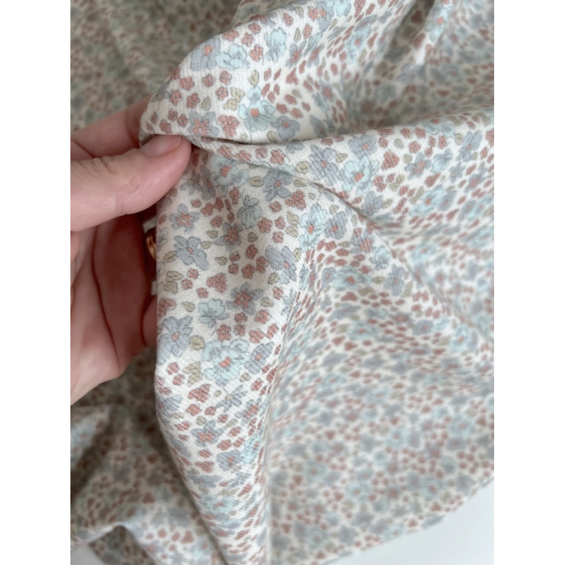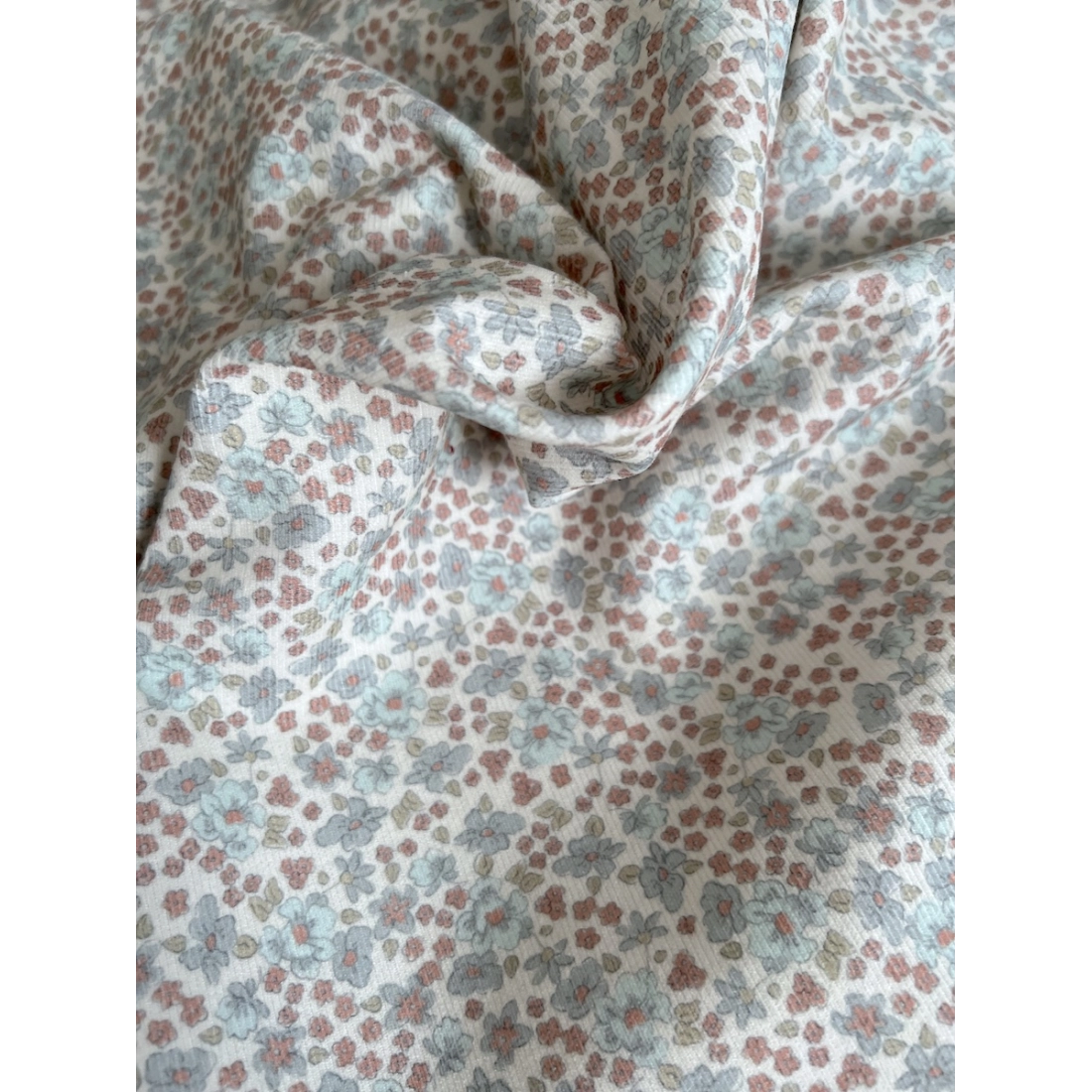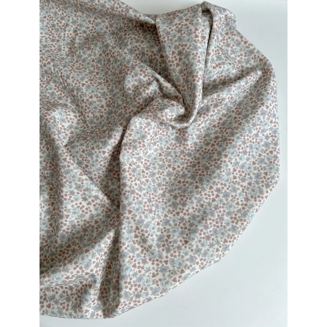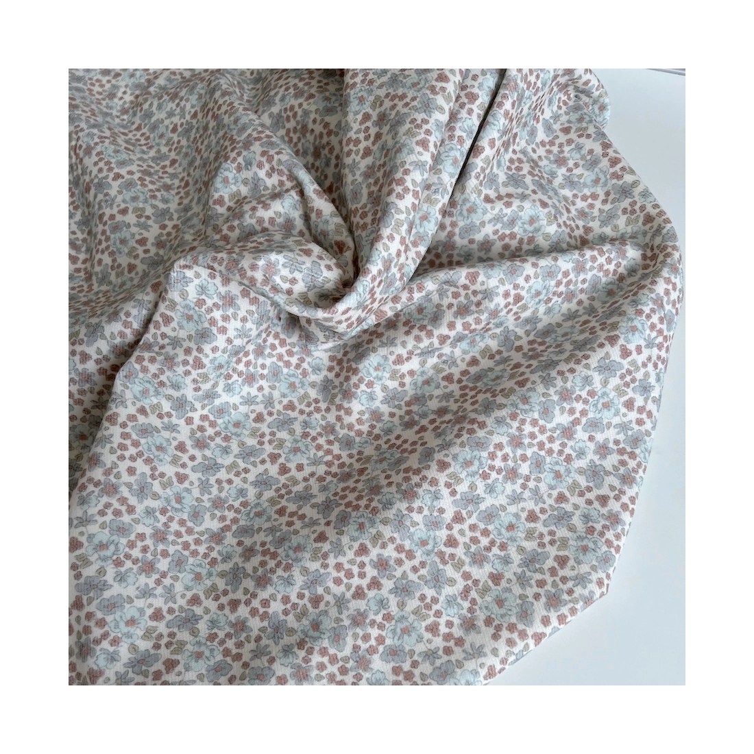 Kristen - Velours milleraies coton organique imprimé fleuri bleuet