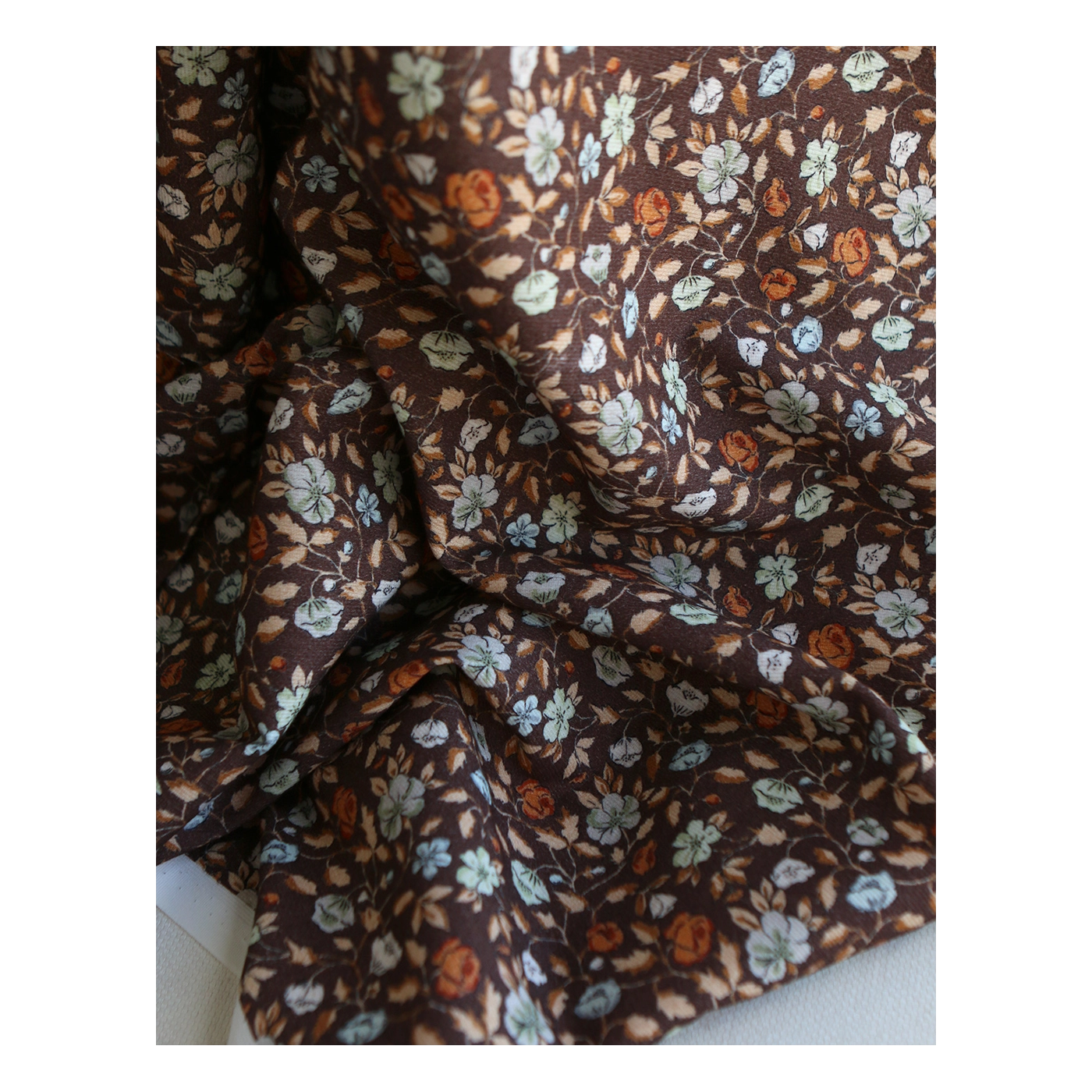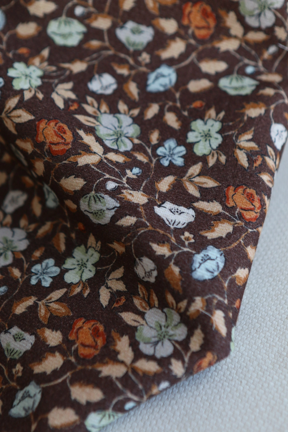 Amelia - Piqué de coton organique gratté imprimé fleuri chocolat