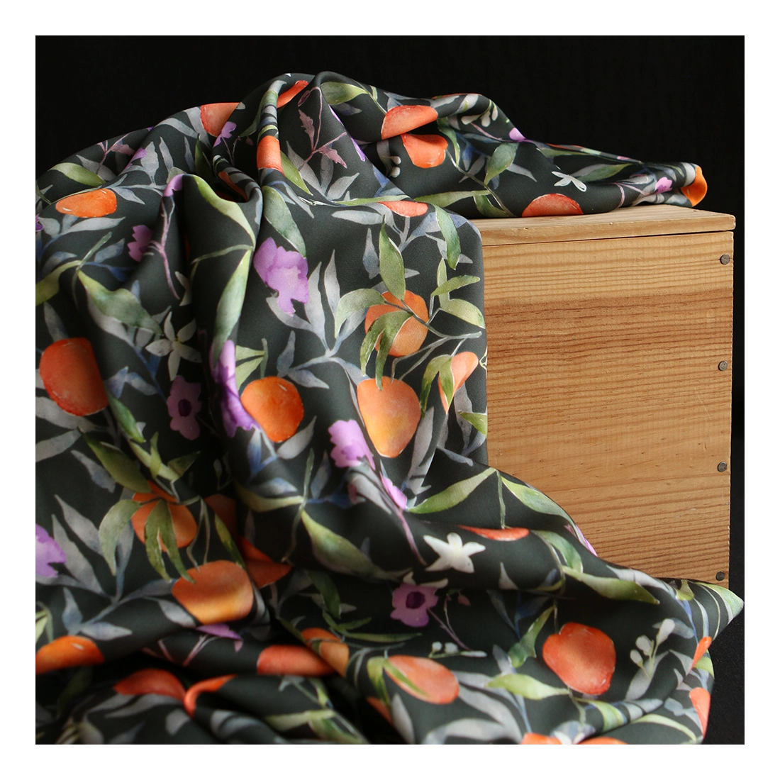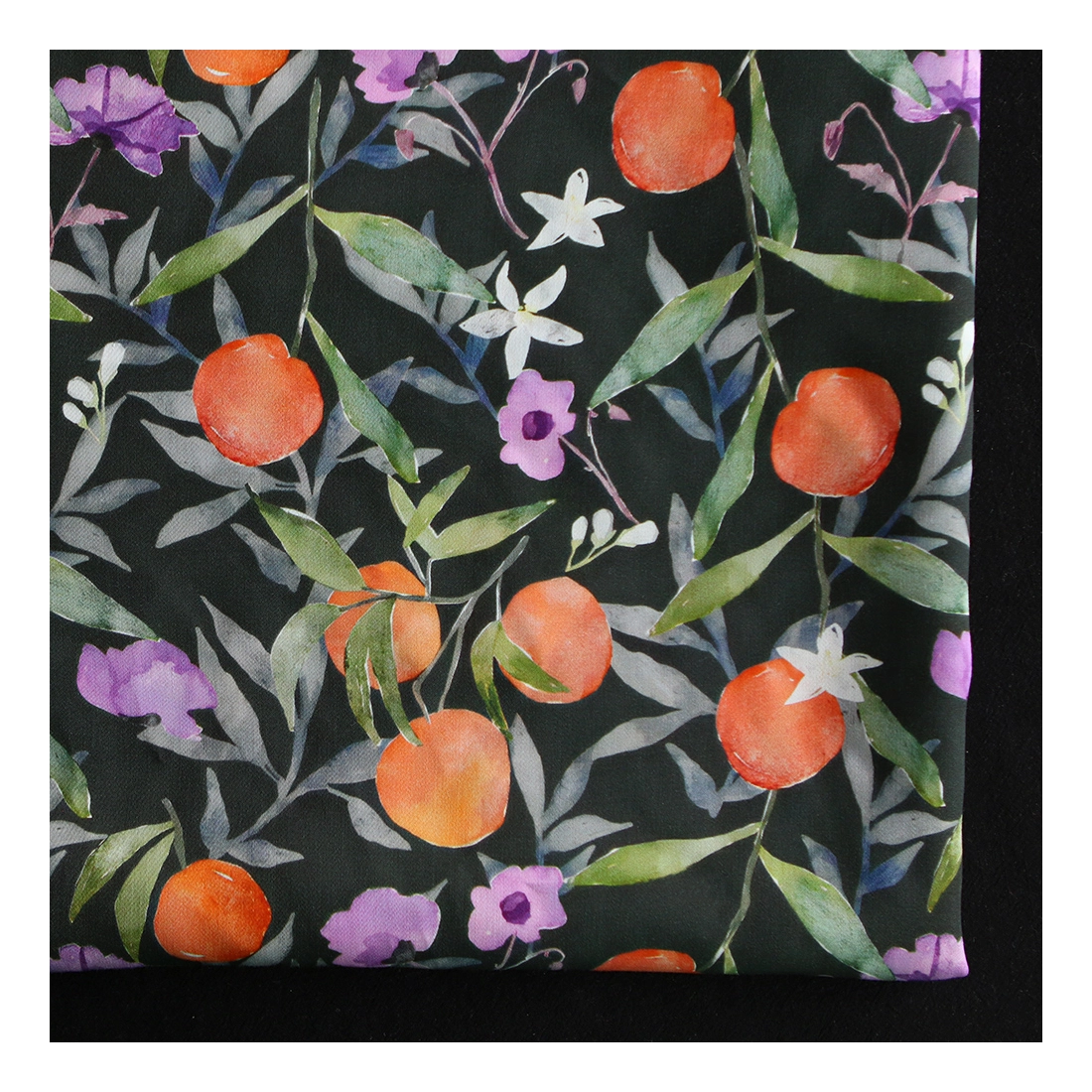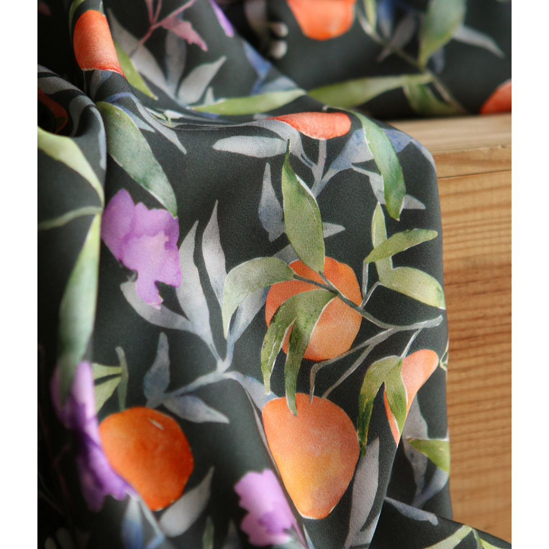 Coloris: motif Neroli, fond anthracite fleuri orange