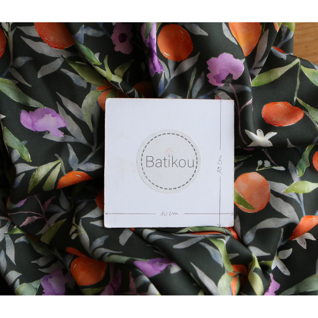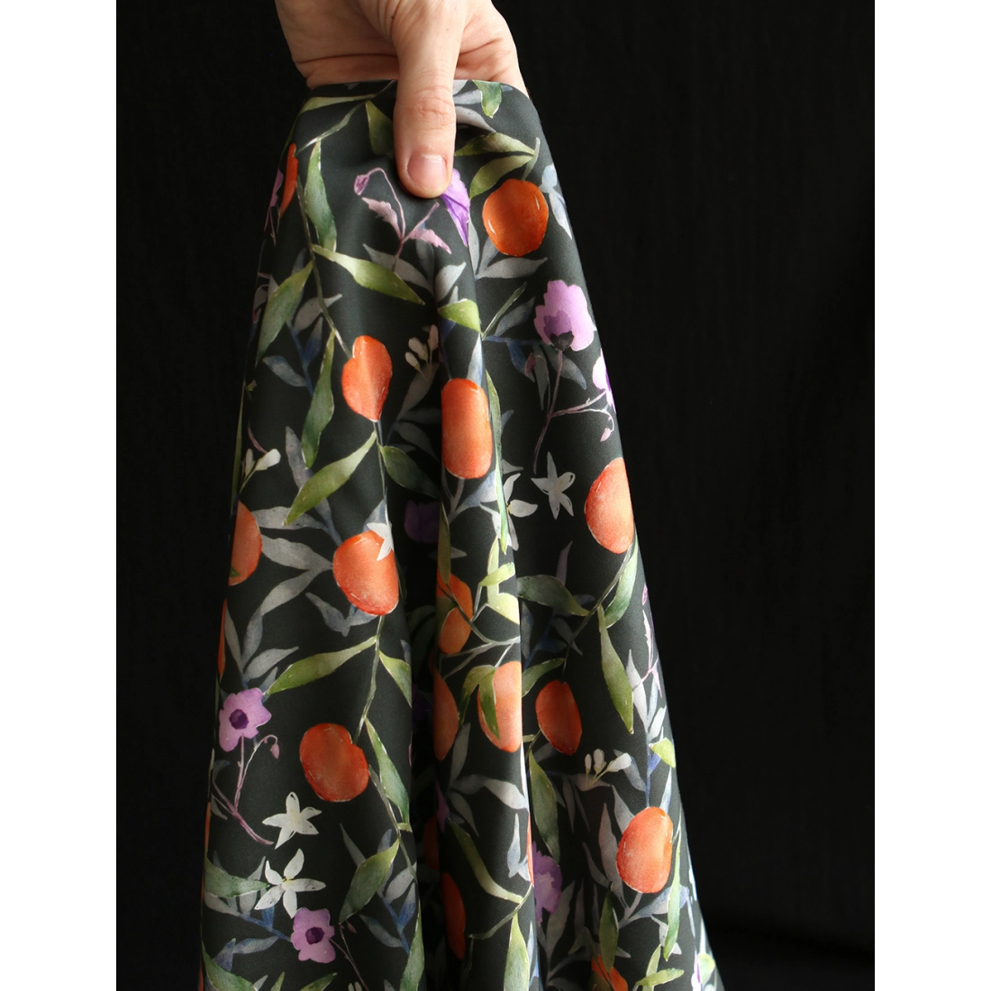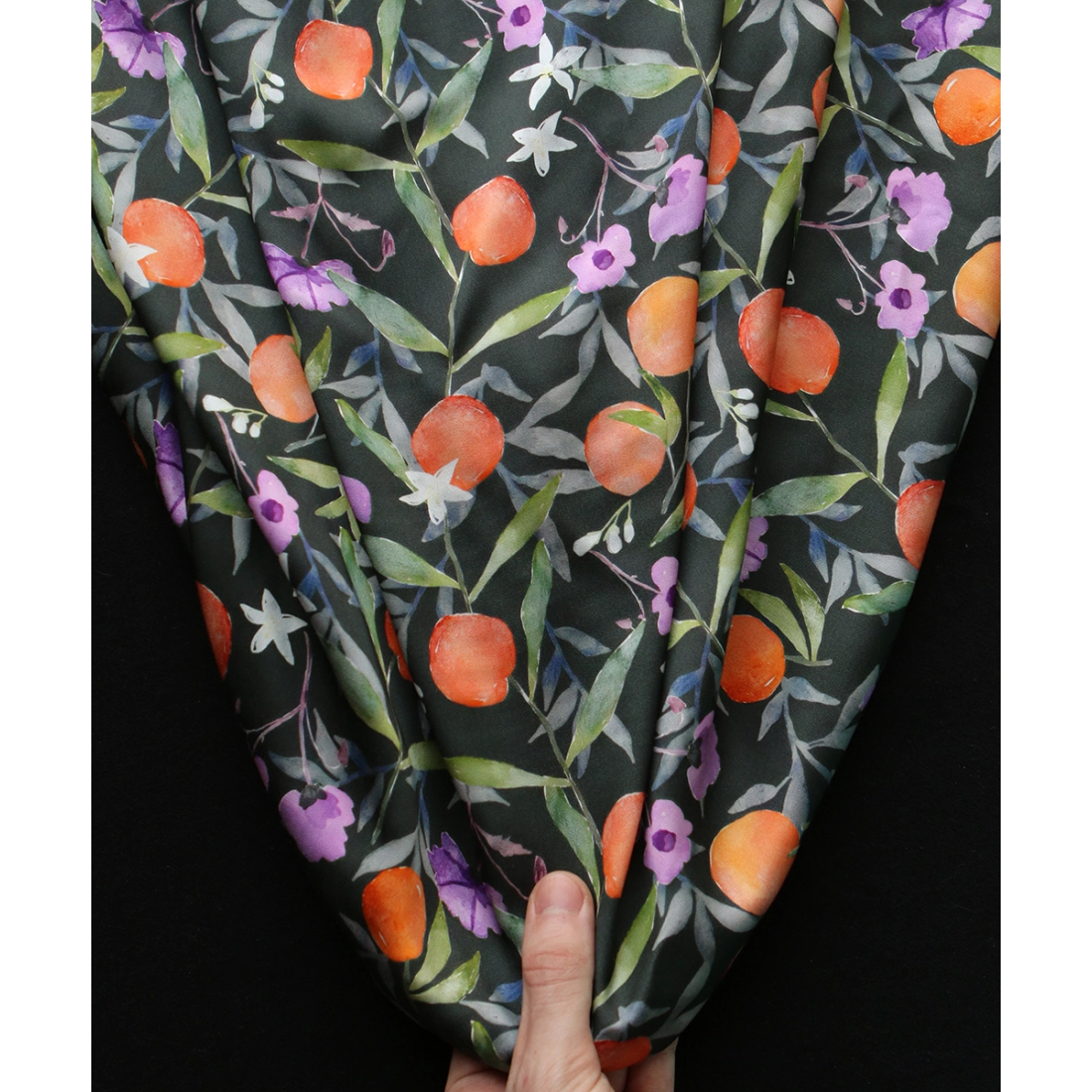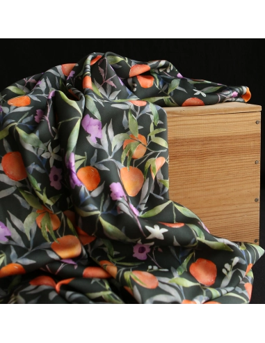 Neroli - Viscose satinée imprimé fleuri anthracite et orange