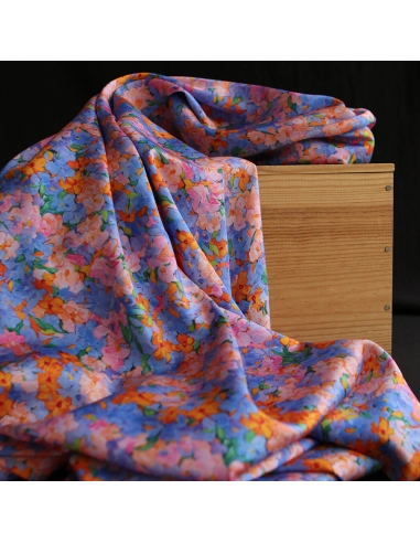 Cécile - Viscose satinée imprimé fleuri parme