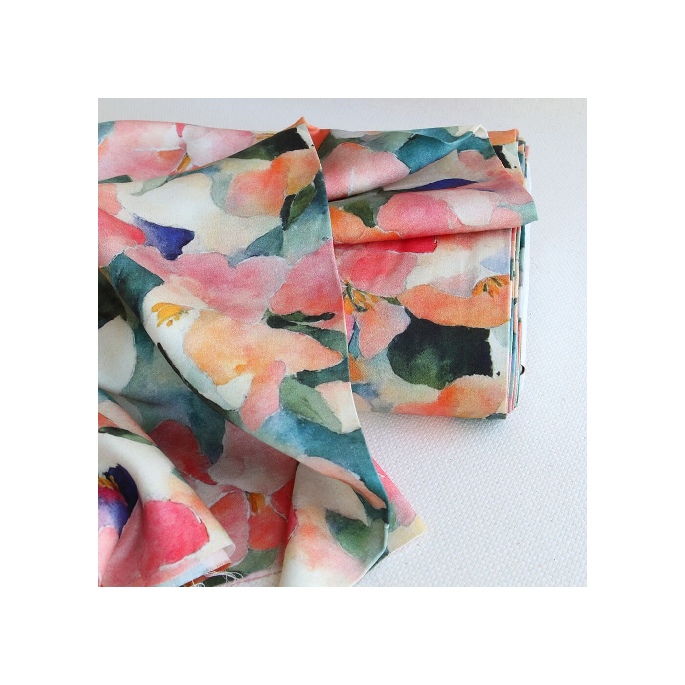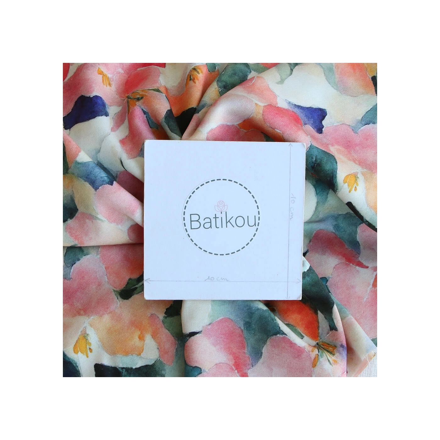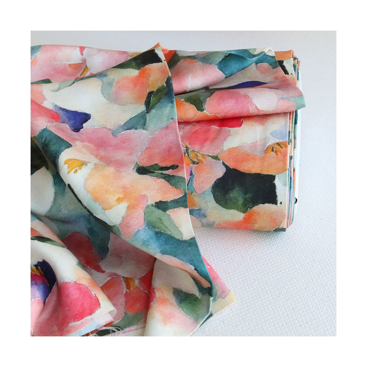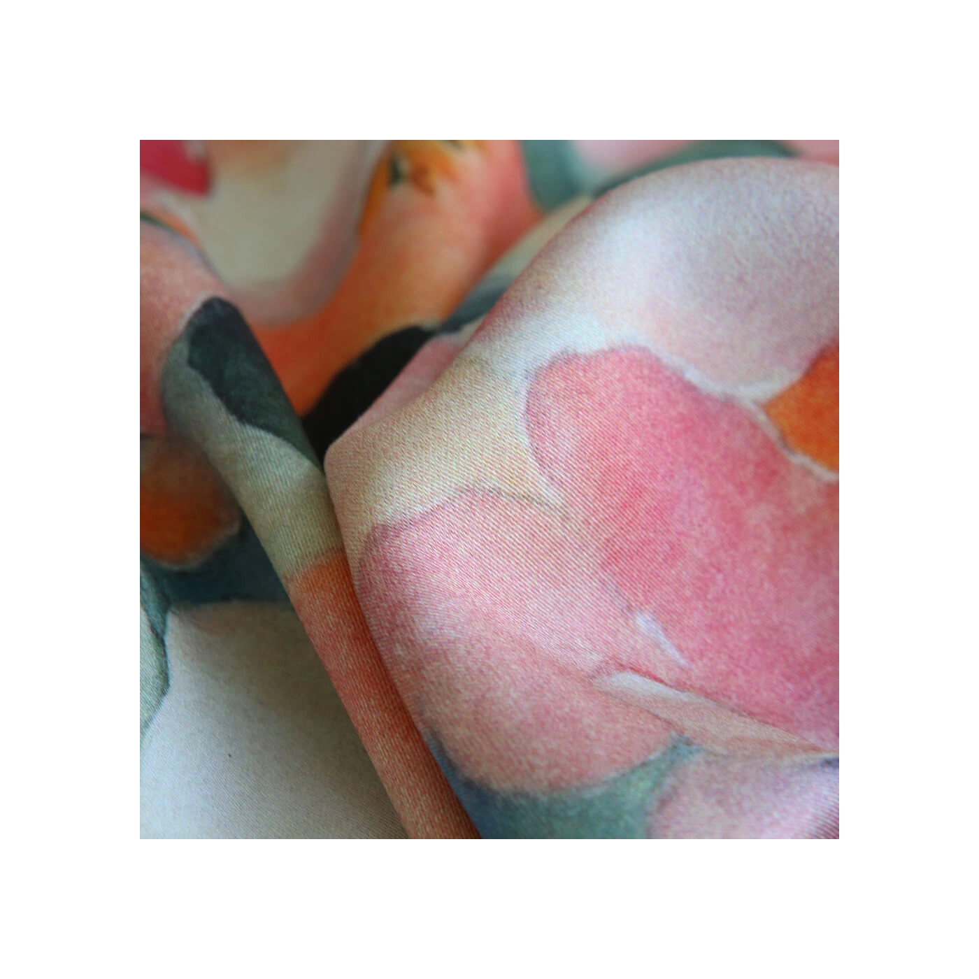 Agathe - Viscose satinée imprimé abstrait vert et pêche