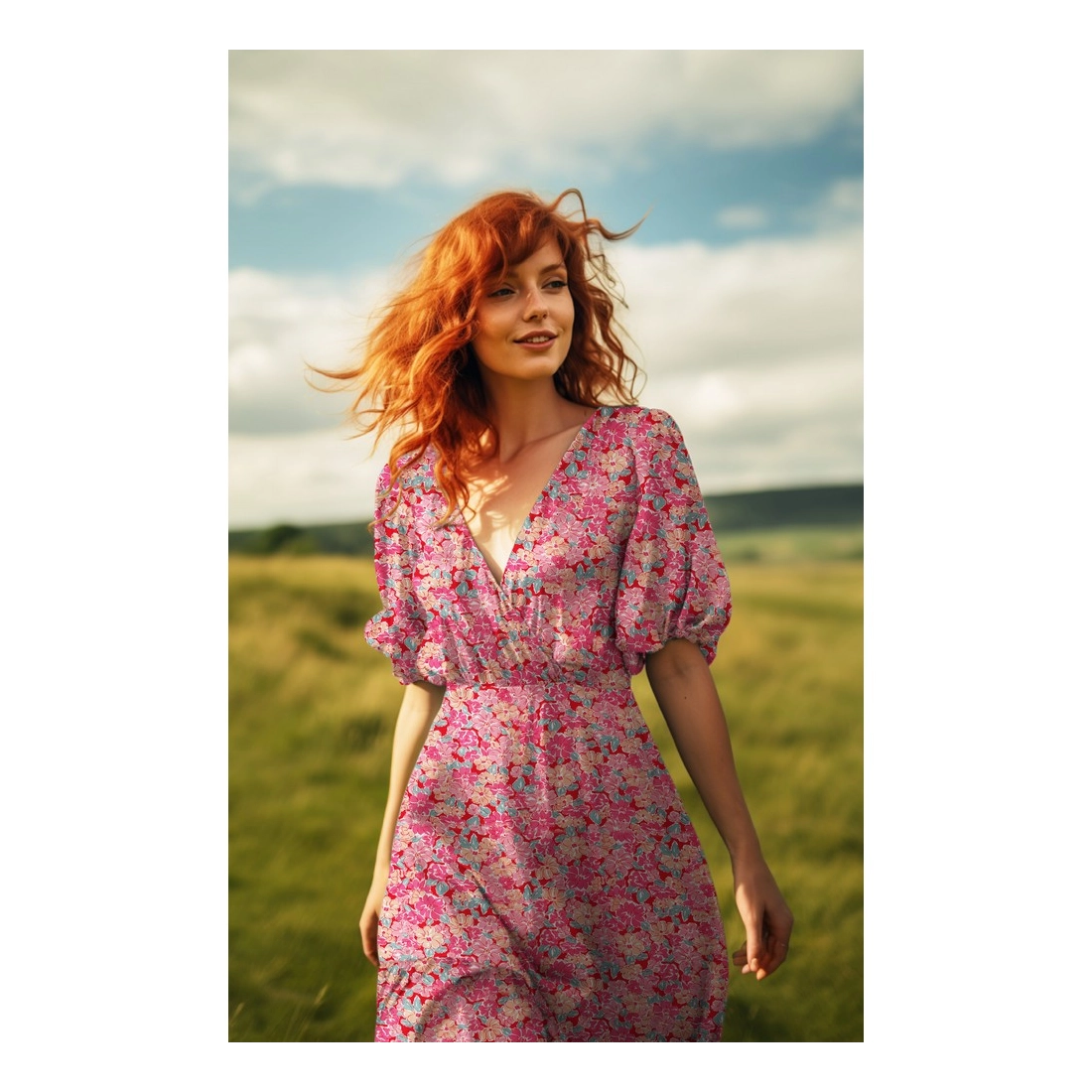 Evie - Viscose Ecovero imprimé fleuri fuschia
