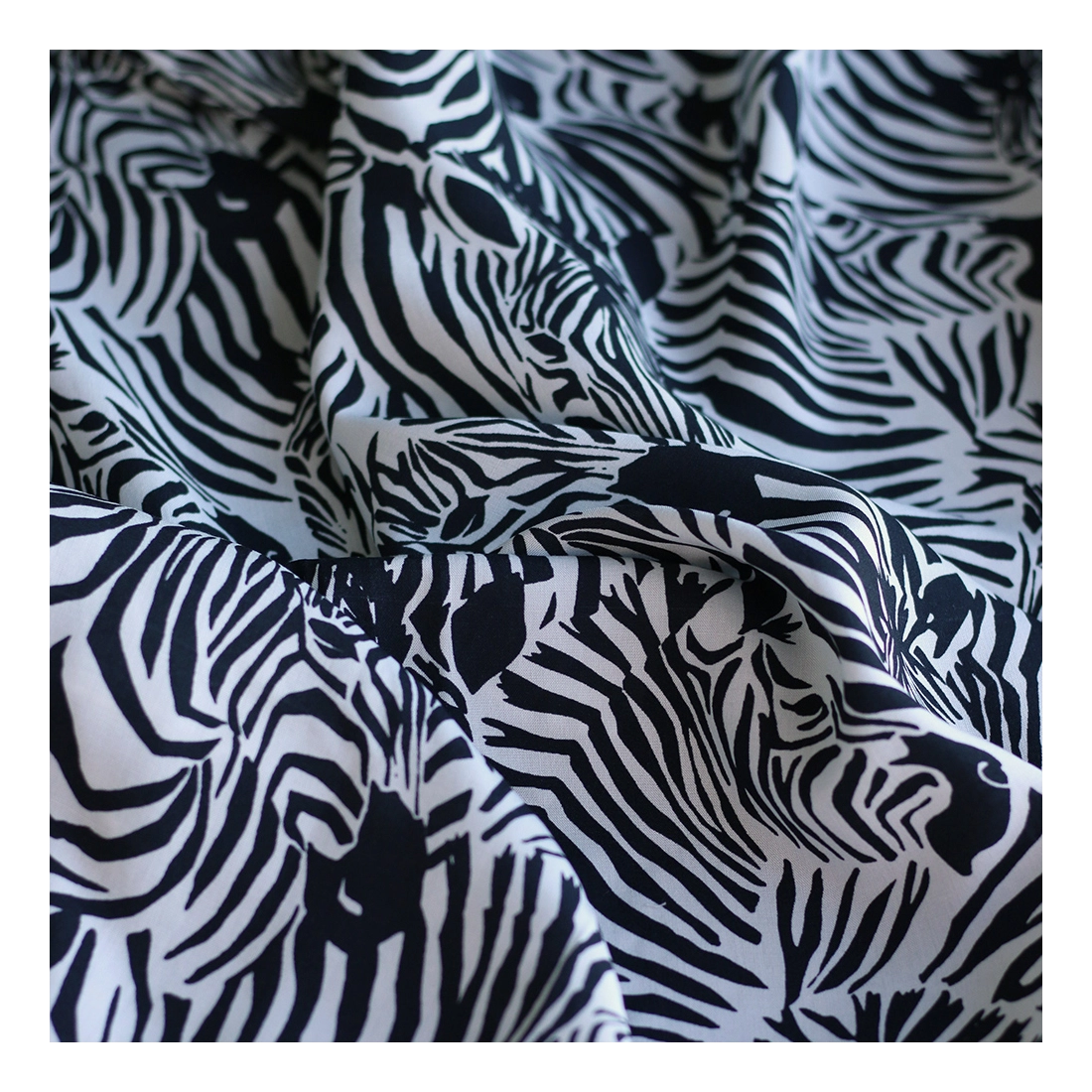 Zebra - Viscose imprimé fleuri graphique zèbres noir et blanc