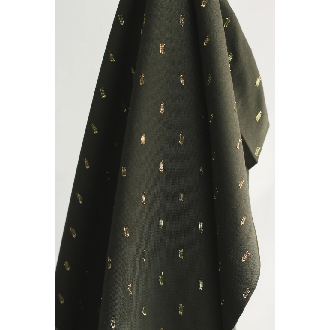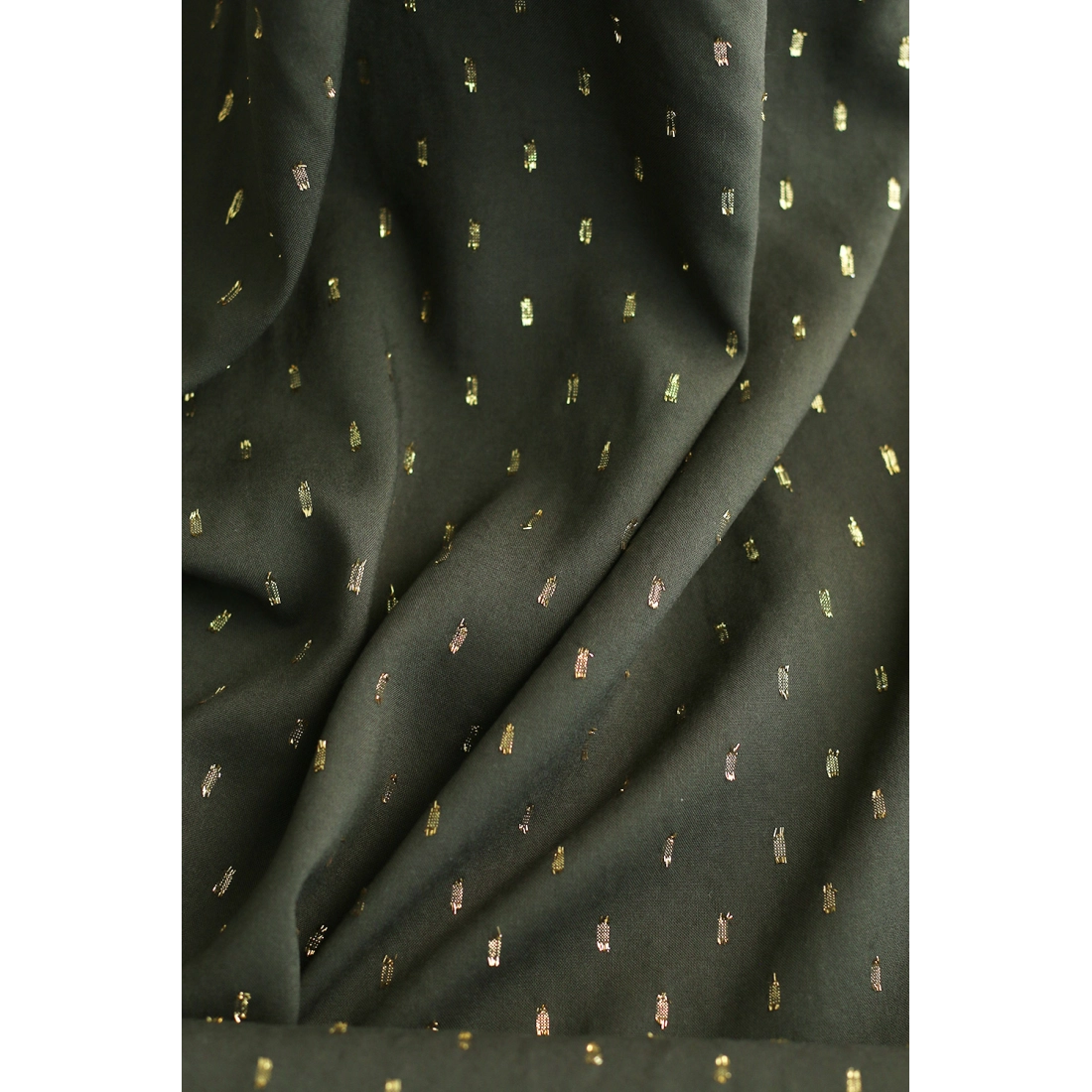 Coloris: plumetis doré fond uni vert kaki